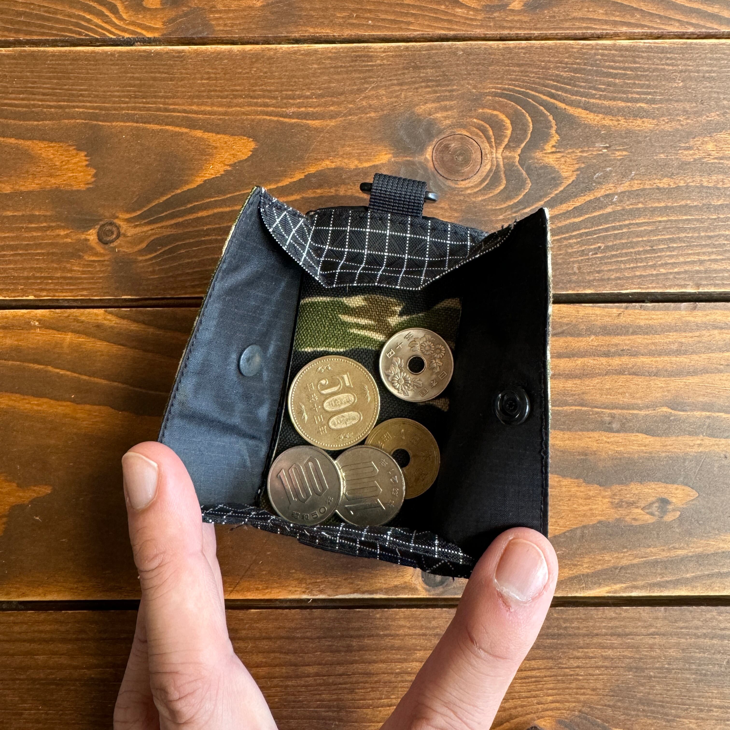 コインケースは三つ折りにした外側に。ガバッと開くタイプなので1mileウォレットのジッパーポケットよりも格段に取り出しやすくなりました。蓋のサイズ感を小銭が落ちないようにしっかり調整してあります。