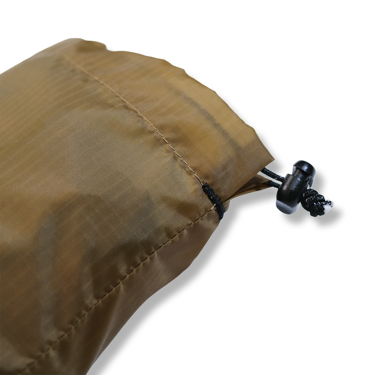20デニールのシルポリはポリウレタンコーティングが施され軽量かつ防風・防水性の高い生地です。極細の補強糸を2本縫い込んだダブルリップストップ仕様により高い引き裂き強度を誇ります。