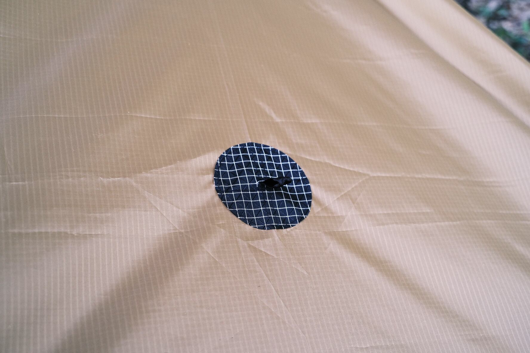 四隅を含む計15箇所のループ部分はダイニーマグリッドストップ生地で補強、円形もしくは半円の補強布は、タープを張った際に張力を均等に逃がしてくれます。